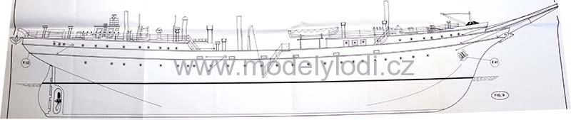 Plánek na stavbu modelu školní lodě německého námořnictva.