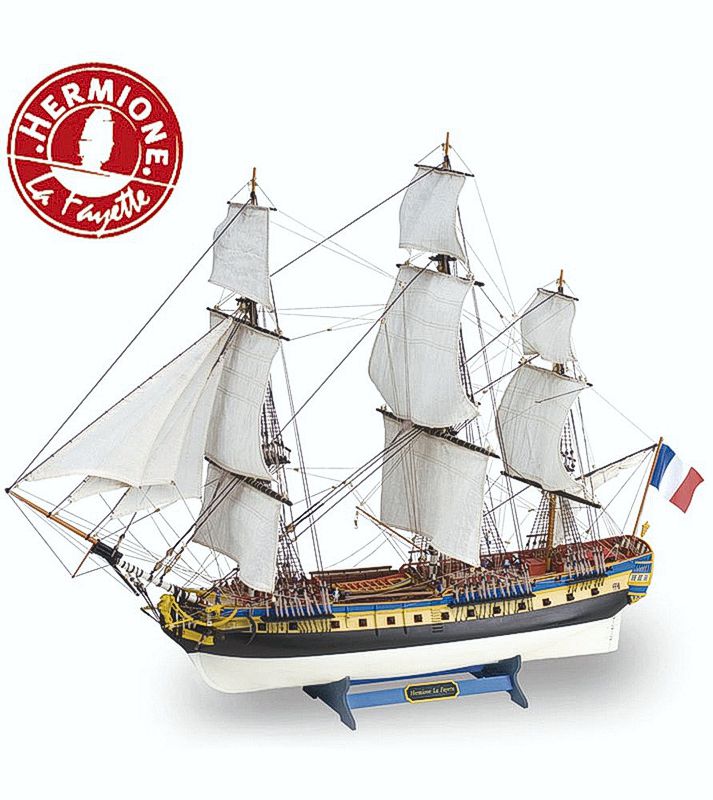 Hermione byla lehká 12ti-liberní fregata s délkou přesahující 65 m, výtlakem 1200 tun a plochou plachet přes 1500 m2. Stavba fregaty byla zahájena v roce 1778 v Rochefort Arsenal podle plánů vynikajícího námořního stavitele Chevillarda I'Ainé. O dva roky později na ní markýz La Fayette odplul k břehům Ameriky s cílem potlačit narůstající snahy o nezávislost.