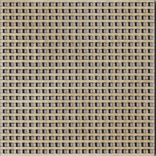 | Laserem řezaný rošt z překližky s vyznačením dělením jednotlivých lišt pro měřítko 1:48. Přesný rozměr: 68,5 x 68,5 mm Tloušťka roštu: 1,5 mm Velikost otvoru v roštu: 1,5 mm | ![]() |