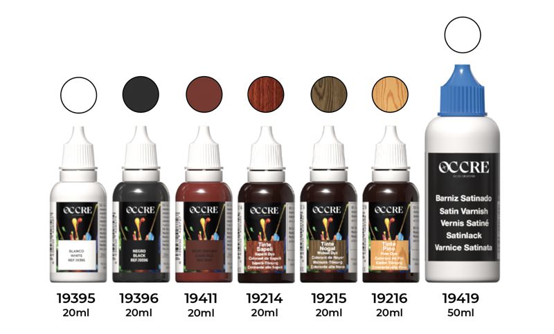 Sada vodou ředitelných a netoxických akrylových barev, mořidel a akrylového polomatného bezbarvého laku pro model Royal Fortune kat.č. 12015.